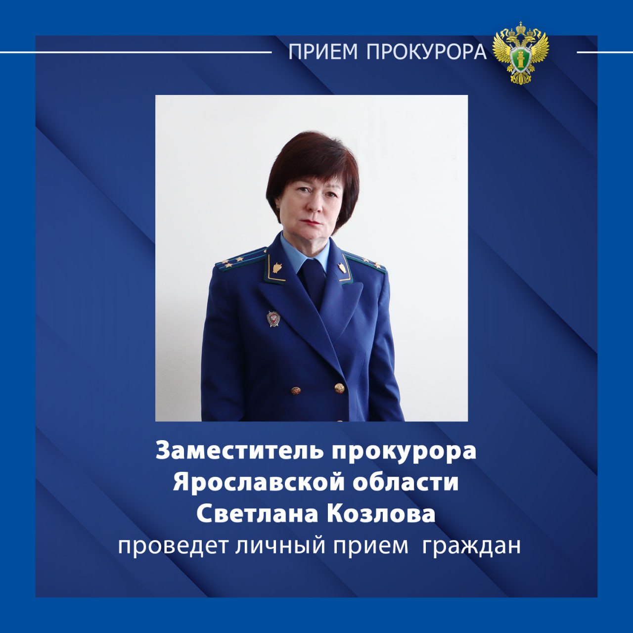 Заместитель прокурора Ярославской области Светлана Козлова проведёт личный прием жителей Пошехонского муниципального округа.