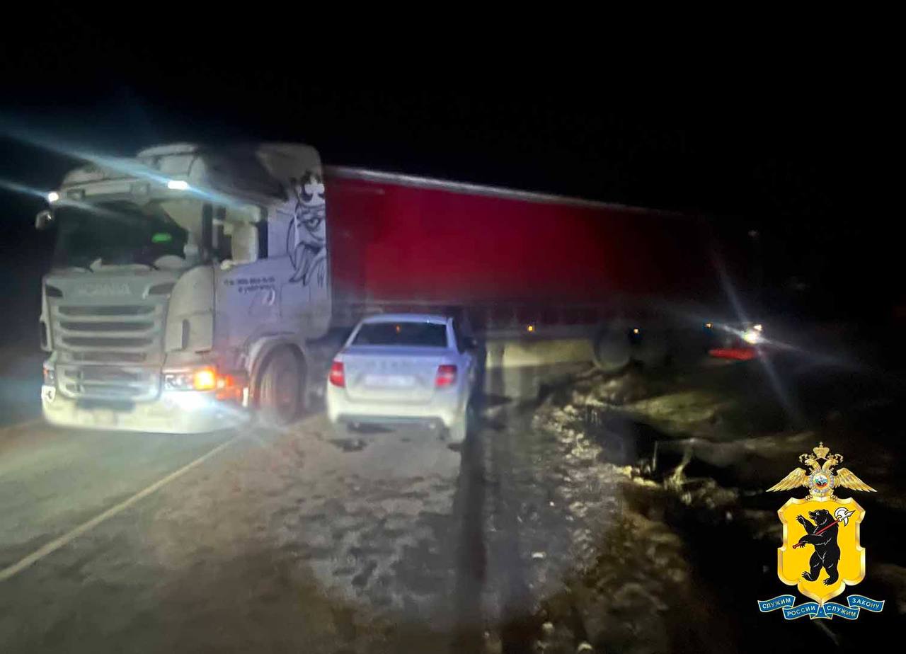 18 марта около 21.20 в г. Ярославле на пер. Софьи Перовской (район промышленной зоны База Нечерноземья пос. Ивняки) произошло столкновение автомобиля «Лада» и грузовика «Скания» с полуприцепом.