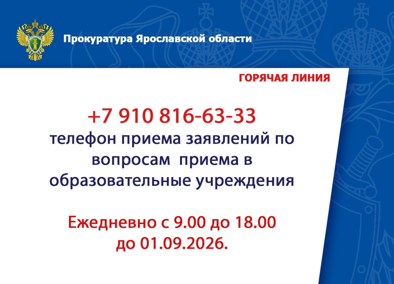 Прокуратура Ярославской области организовала работу «горячей линии» по вопросам приёма в образовательные учреждения.