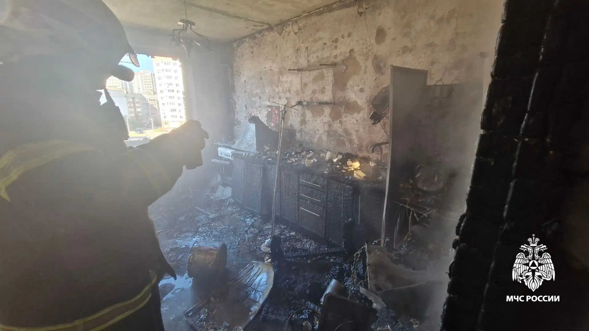 Огнем повреждена однокомнатная квартира на площади 42 квадратных метра. Уничтожена кухня на площади 10 квадратных метров.