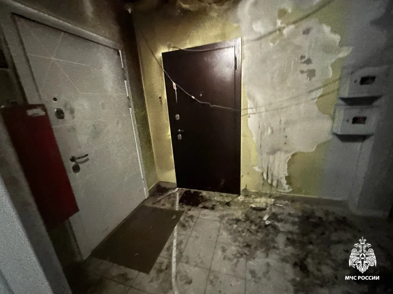 Огнём уничтожена коляска и поврежден коридор на площади 25 квадратных метров.