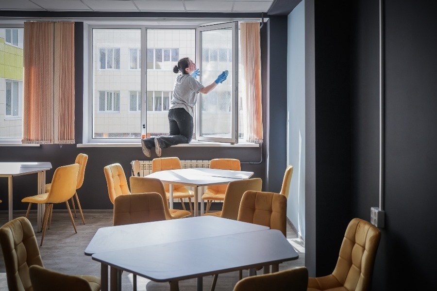 Сейчас в здании учебного учреждения устраняют косметические недочёты подрядчика, наводят порядок на территории, моют кабинеты, расставляют мебель.
