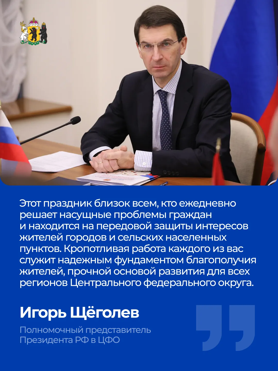 Полпред Игорь Щёголев поздравил работников местного самоуправления с профессиональным праздником