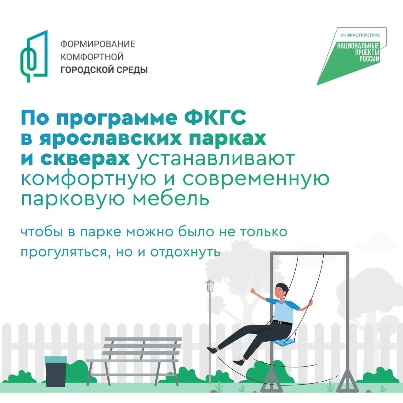 По федеральной программе «Формирование комфортной городской среды» общественные пространства в Ярославле становятся современными, комфортными и интересными. Из чего именно может состоять благоустройство территорий, рассказали в карточках