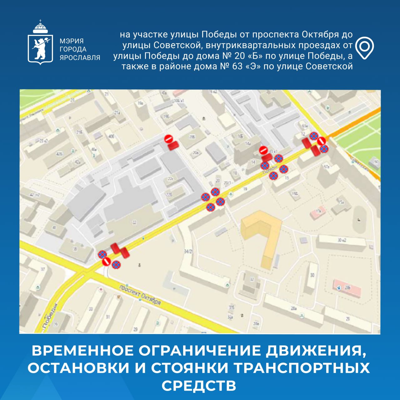 на участке улицы Победы от проспекта Октября до улицы Советской, внутриквартальных проездах от улицы Победы до дома № 20 «Б» по улице Победы, а также в районе дома № 63 «Э» по улице Советской