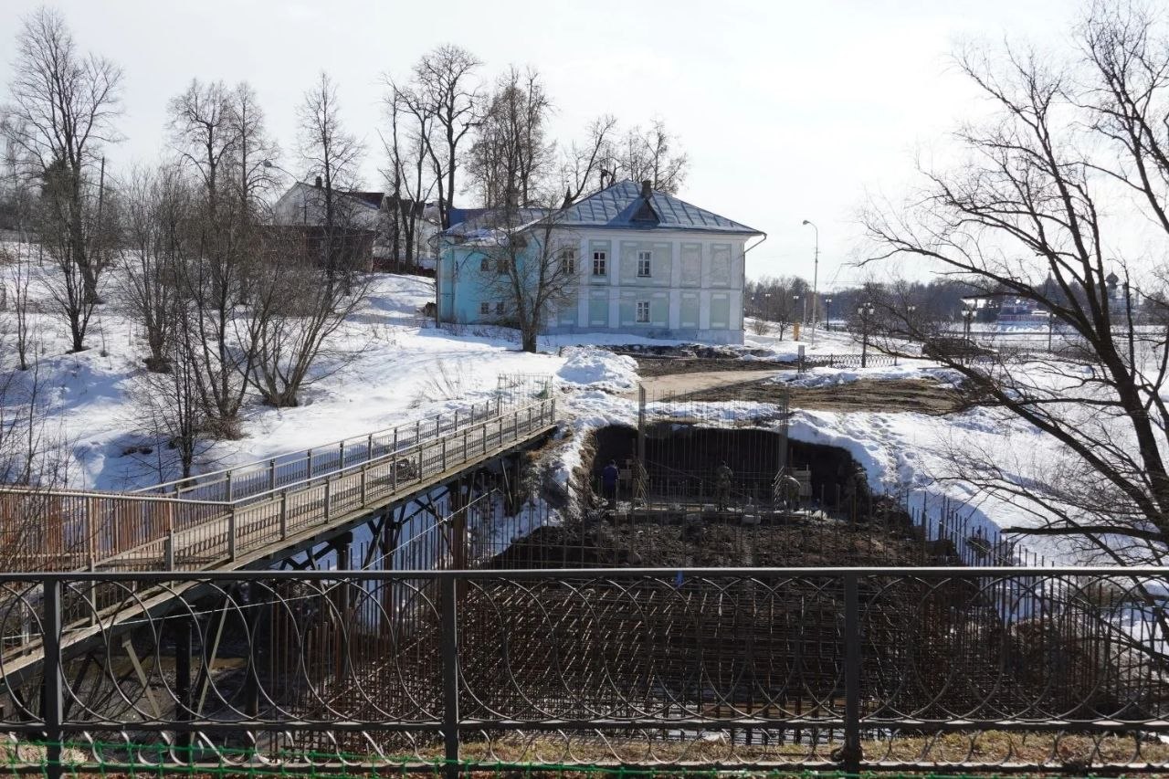 В Угличе приступили к строительству нового велопешеходного моста. Получено официальное разрешение, на площадке уже идут подготовительные работы.