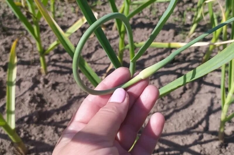 Чесночные стрелки можно легко снять, слегка потянув на себя, что обычно позволяет избежать повреждений. Если это не удаётся, стрелки можно аккуратно отрезать ножницами.