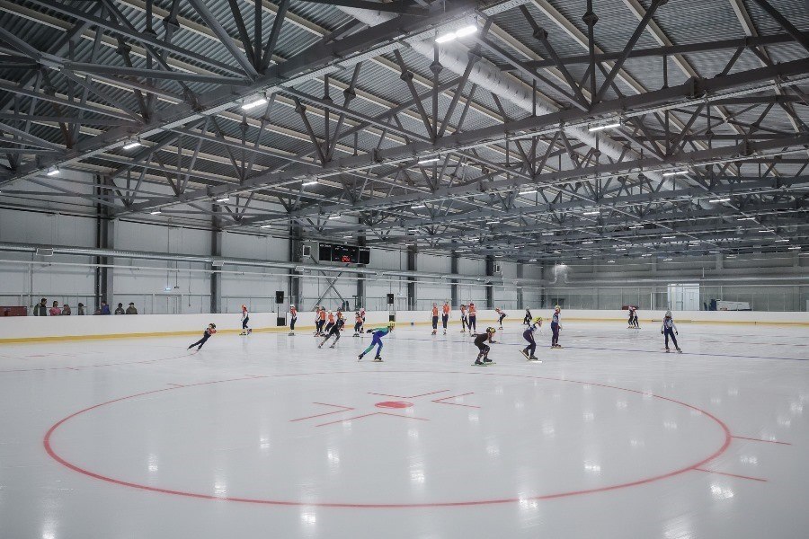 Новая тренировочная арена – это крытое ледовое поле 30 на 60 метров, тренажерный зал, медицинский кабинет, служебные и технические помещения для персонала. Здесь установлено новейшее оборудование - цифровой счётчик кругов, камеры фотофиниша, универсальное табло.