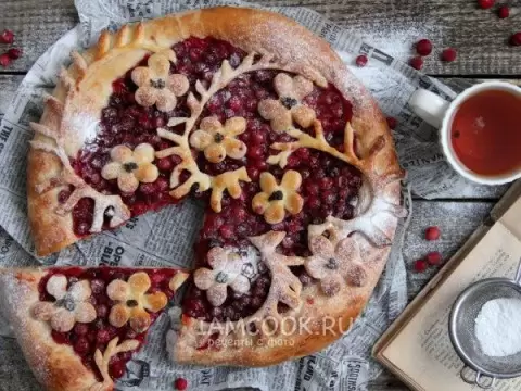 Такой пирог готовится за 40 минут и содержит 269 кКал на порцию. Он станет настольным лакомством для всей семьи, сочетая в себе легкость теста и кислинку клюквы.