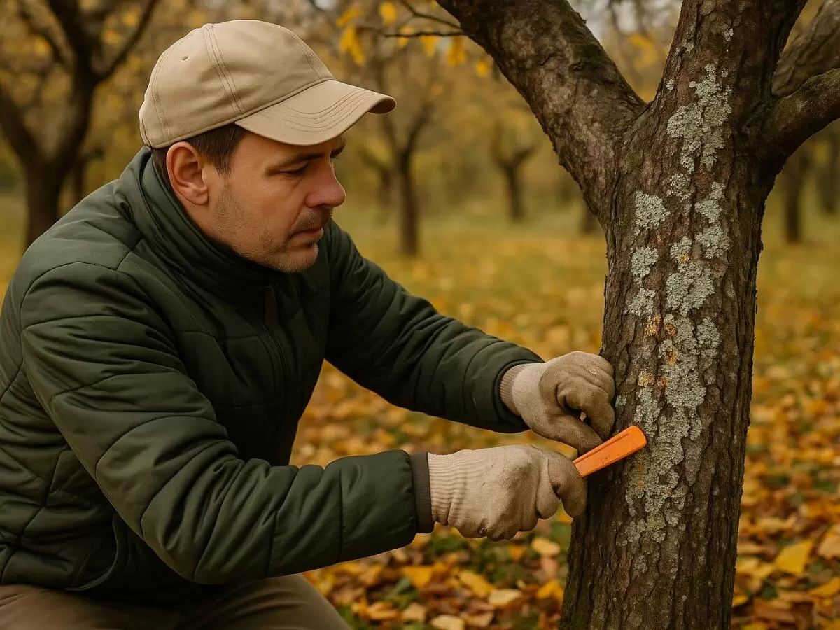 - Механическое удаление. Используя мягкие щетки и специальные инструменты, можно аккуратно удалить лишайники с коры растений. Это наиболее простой и доступный способ. Рекомендуется выполнять процедуру в дождливую погоду, чтобы лишайники легче отрывались от коры.