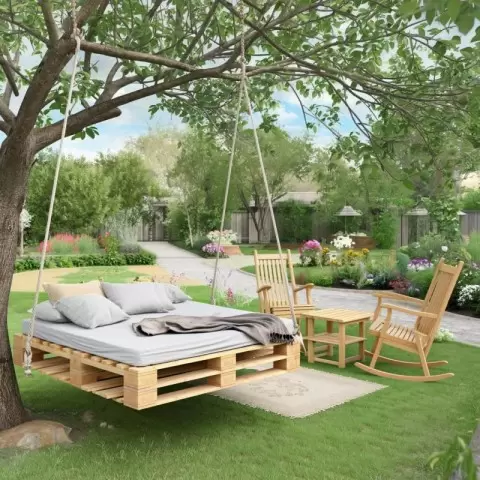 Представьте, как приятно провести время в саду, наслаждаясь легким покачиванием на стильной подвесной кровати. Этот уникальный проект можно легко реализовать самостоятельно, используя деревянные паллеты. Такой элемент ландшафтного дизайна не только сэкономит бюджет, но и станет стильным акцентом вашего участка.