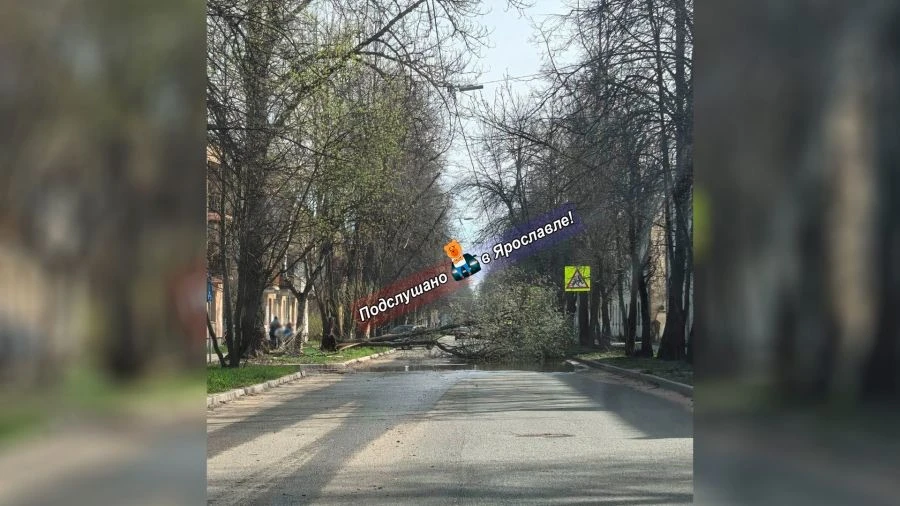По словам автора поста, дерево не выдержало сильных порывов ветра и рухнуло поперек проезжей части, предварительно задев провода.