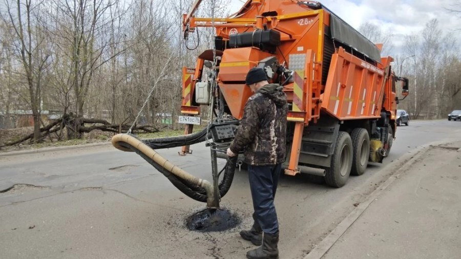 — Сейчас мы закупили небольшой объем материала, бригада осваивает новую для Рыбинска машину и технологию. Для обучения выбирают дороги с низким трафиком, — рассказал Сергей Цепилов, директор МБУ «ДЭС».