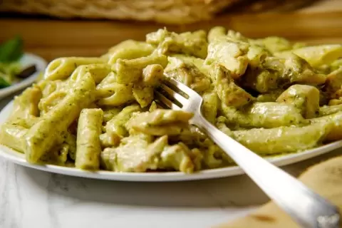 Паста с кремовым песто — это не просто блюдо, это кулинарное искусство, где встречаются насыщенные ароматы и текстуры. Каждое «перо» обволакивается великолепным сливочным соусом с чудесным базиликовым послевкусием. Это идеальный выбор для семейного ужина, способный удивить даже самых взыскательных гурманов.