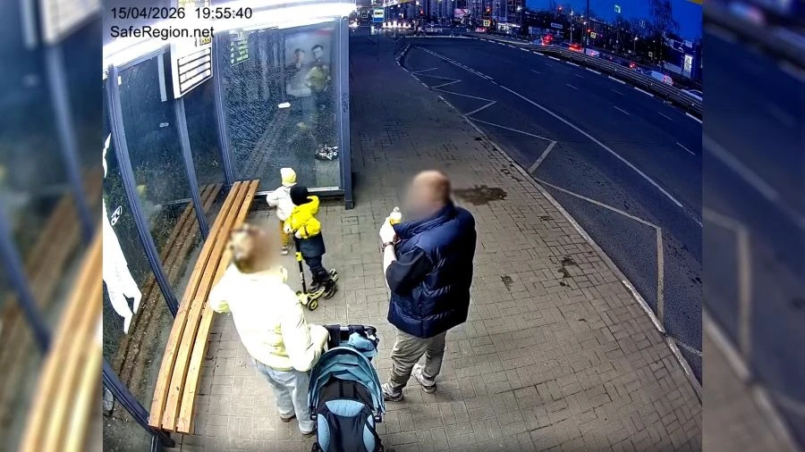 После случившегося женщина и мужчина обернулись на камеру и затем вместе с детьми покинули остановочный комплекс.