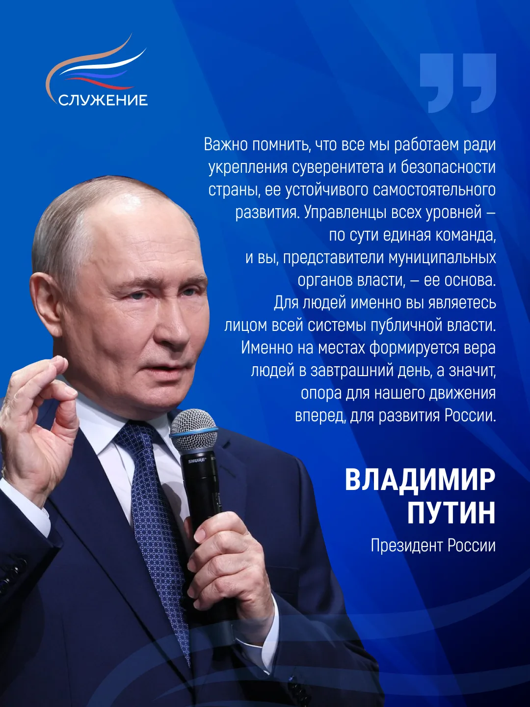 Всероссийская премия «Служение» проводится по поручению Владимира Путина. Ежегодно наградами отмечают работу тех представителей муниципального сообщества, кто внес особый вклад в повышение качества жизни граждан.